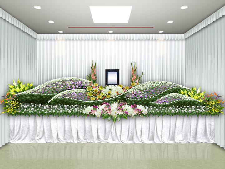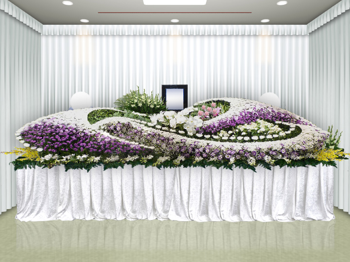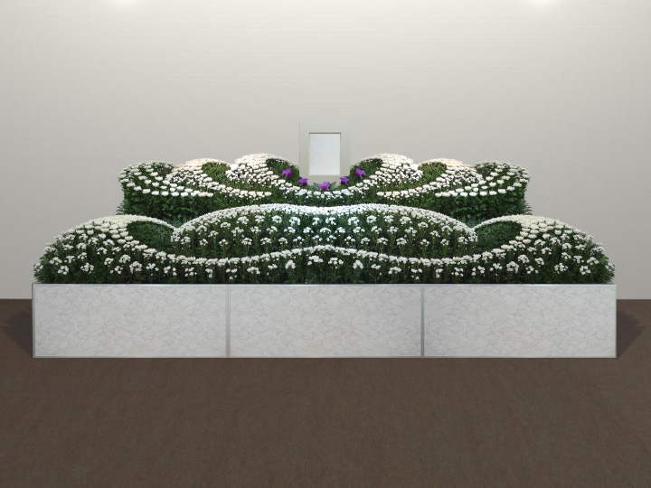 祭壇は生花を使用した花祭壇をご用意しておりますが、オプションにてお好きなお花でのアレンジ等が可能となっております。