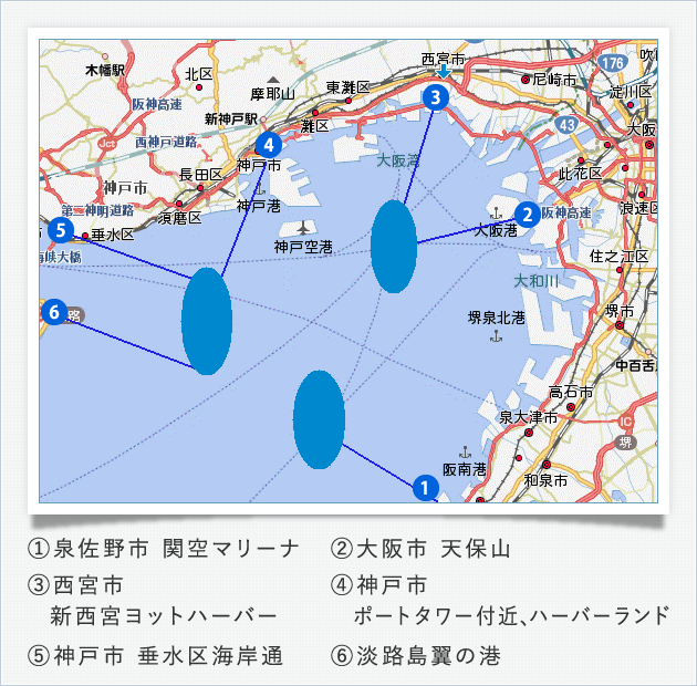 - 出航場所により、散骨海域は変わります。また、散骨当日の天候等により、船長の判断で散骨海域を決定いたします。